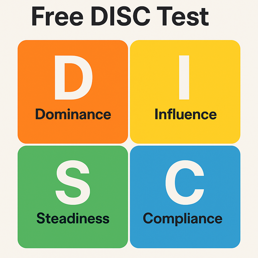 DISC personality test เป็นเครื่องมือที่ใช้ในการประเมินบุคลิกภาพ ที่มีประโยชน์อย่างยิ่งสำหรับการพัฒนาผู้นำและการจัดการพฤติกรรมภายในองค์กร โดยแบ่งบุคลิกภาพออกเป็น 4 ประเภท: Dominance (D), Influence (I), Steadiness (S), และ Conscientiousness (C)